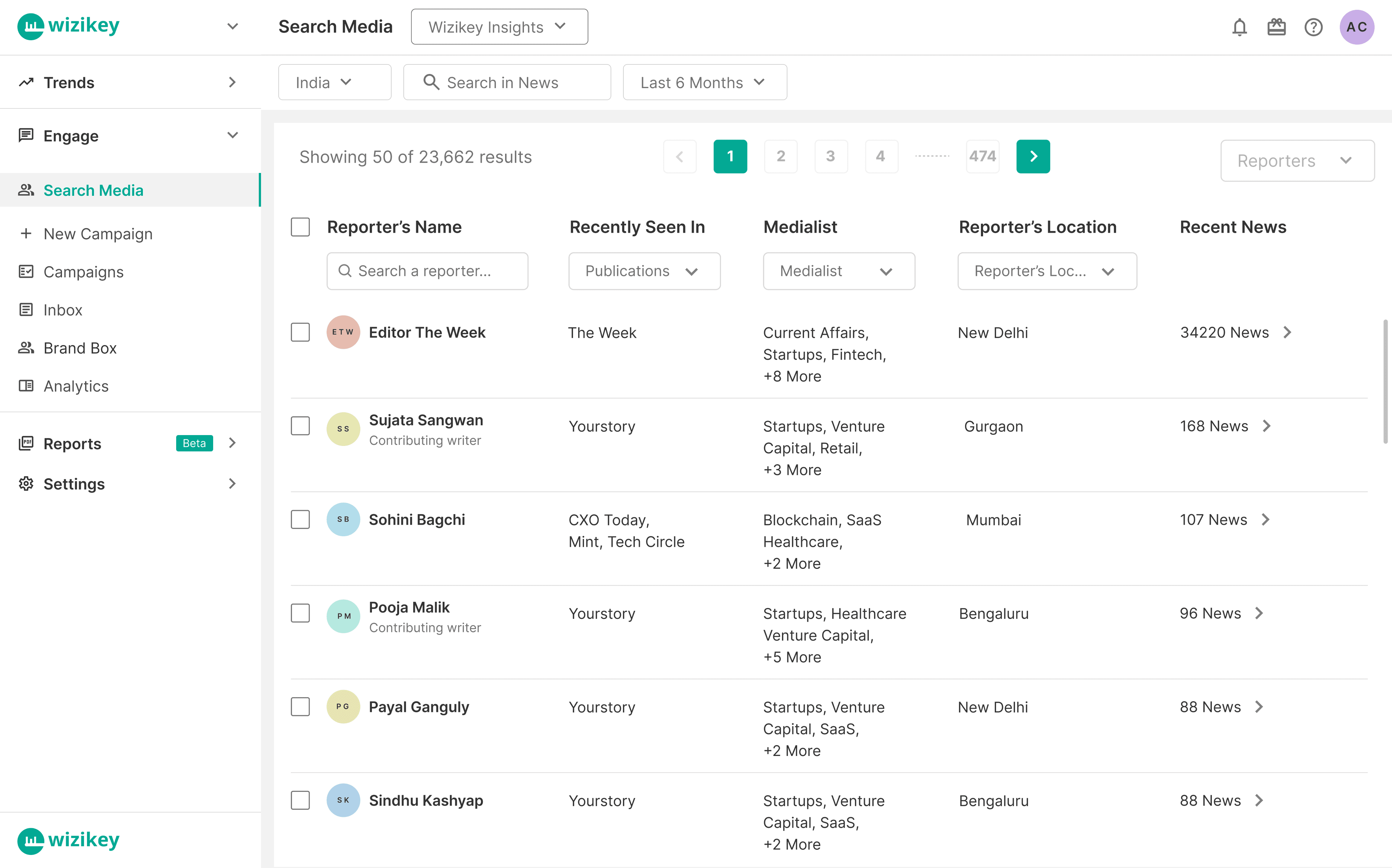 Wizikey curated medialists to help you find the most relevant reporters for the brand's industry