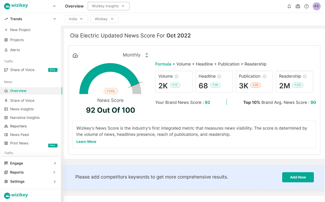 Wizikey saves time by bringing relevant brand mentions from news, blogs, podcasts and other mediums in one place. It provides insights to build better awareness. It is built by communications' professionals who struggled with excel sheets, clunky software and decided to solve it themselves.